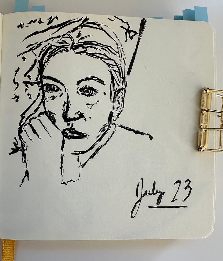I started drawing in earnest in July. My new interest in drawing aligned with my new difficulty reading and writing. I clearly needed some form of analog mark-making in my life, as a tool for processing the world and my experience in it.