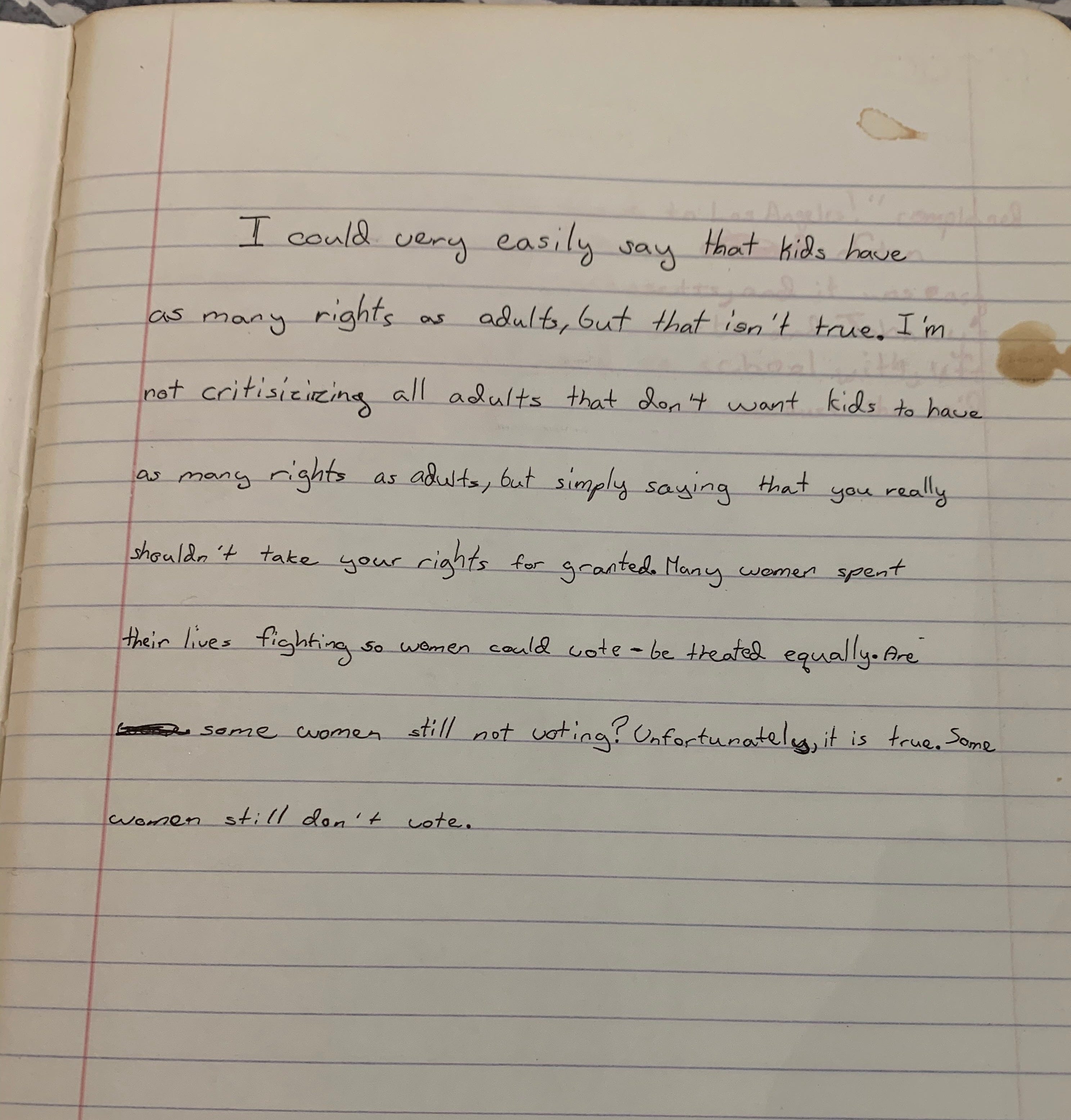 In another world – no, in another body – my last few months would have looked very different than they have. After Biden stepped out of the race, I had ambitions of throwing myself wholeheartedly into campaigning for Kamala. Not that there was or is anything I individually could have done to make a meaningful difference. Not that I have many shreds of faith in the American political process remaining – nothing like I had as a child or younger adult (see me age 6 in October 1996, dressing up as Hillary Clinton for Halloween with a Vote pin on my lapel; or age 9, brainstorming for an advocacy campaign to encourage politically-minded children to register their parents to vote; or 10, writing a school research project on female suffragettes; or 19, interning on Capitol Hill; or 26, co-founding Project 100, a political startup supporting progressive women running for Congress).